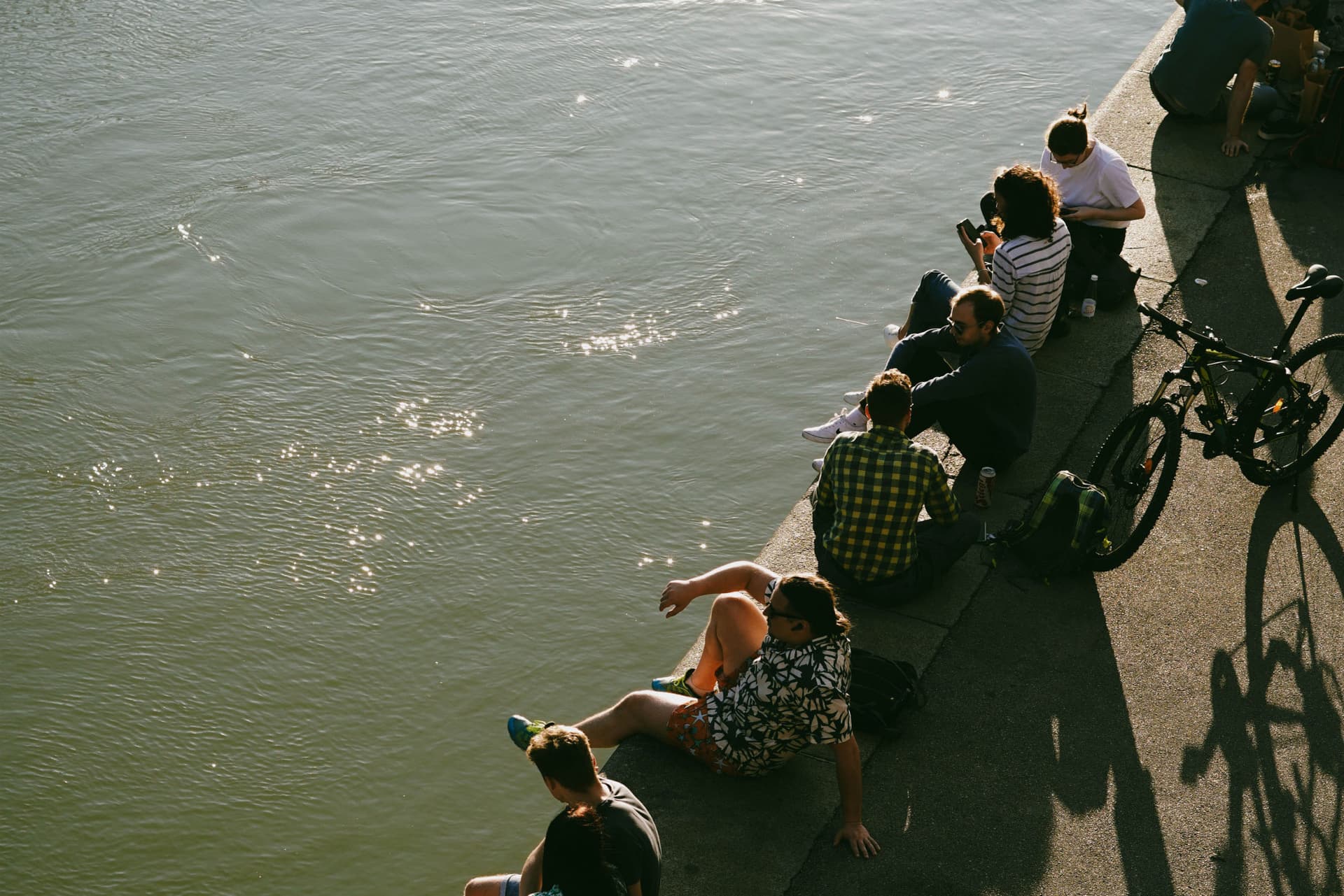 Sitting on the Danube Canal with a beer and a few friends.